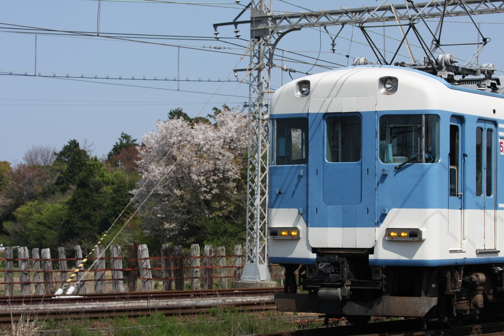 今年の春、明星駅(みょうじょう)で撮影したもので、遅めに咲いた桜と絡めて撮影しました。