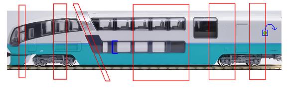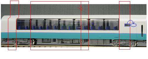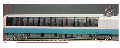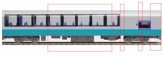 この車両は窓の枚数が少ないので、先ほどのモハ251とは逆に窓の枚数を減らします。